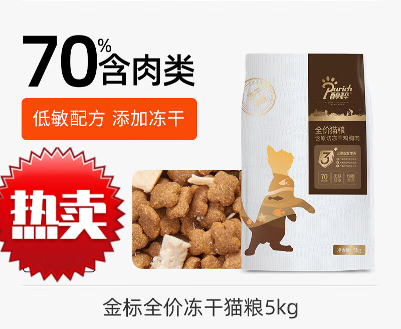 醇粹(Purich)金标全价低敏冻干成幼猫粮纯粹5kg 无麸配方-添加鸡肉冻干 5kg /包