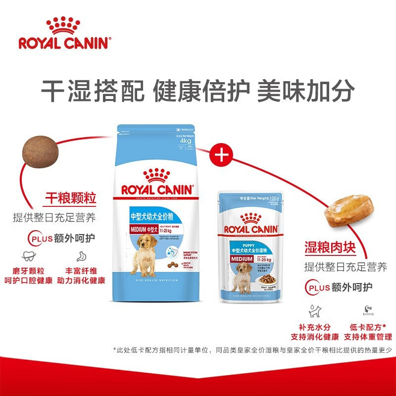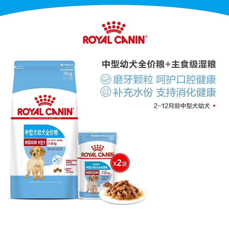 皇家(ROYAL CANIN)中型犬 全价粮 MEJ32/4KG MEAW/0.1KG*2
