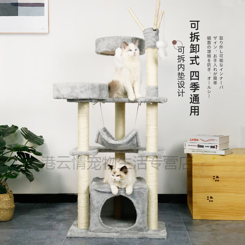 猫爬架猫窝一体猫抓板猫树大型实木猫咪用品四季通用小型猫咪架子 升级中型款YM-1()【七层款带2个窝 3个跳台】
