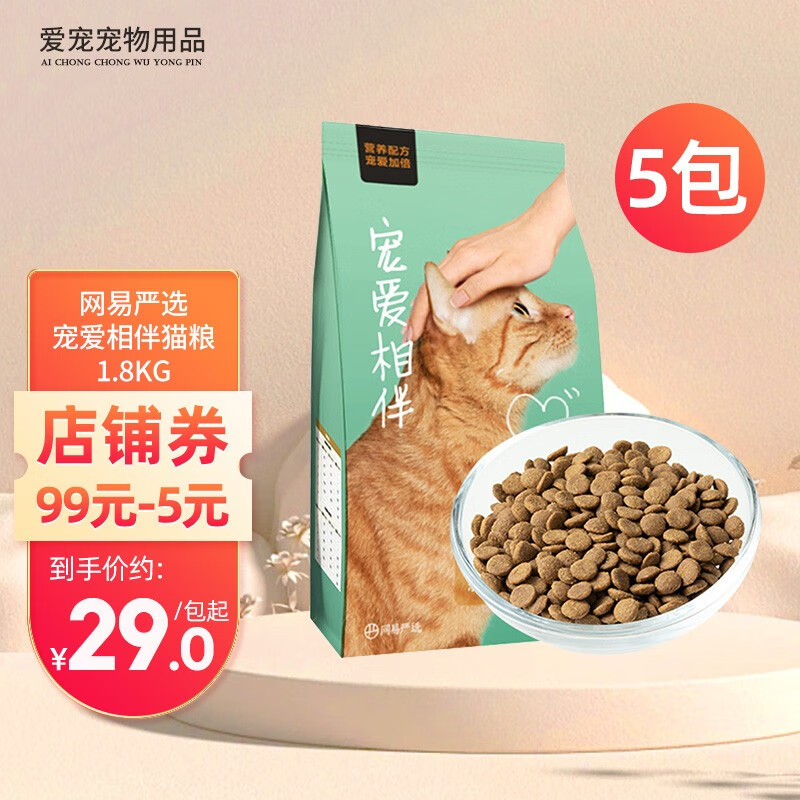 网易严选猫粮 1.8kg 全价冻干猫粮成猫猫粮幼猫猫粮无谷粮猫干粮猫主粮 【宠爱相伴】全价猫粮 1.8kg*5包