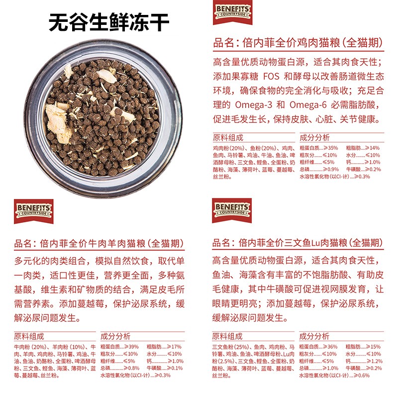 倍内菲猫粮1.8KG天然无谷冻干鸡肉牛肉三文鱼红肉成幼猫营养6.8kg弗莱明 鸡肉配方 1.8kg