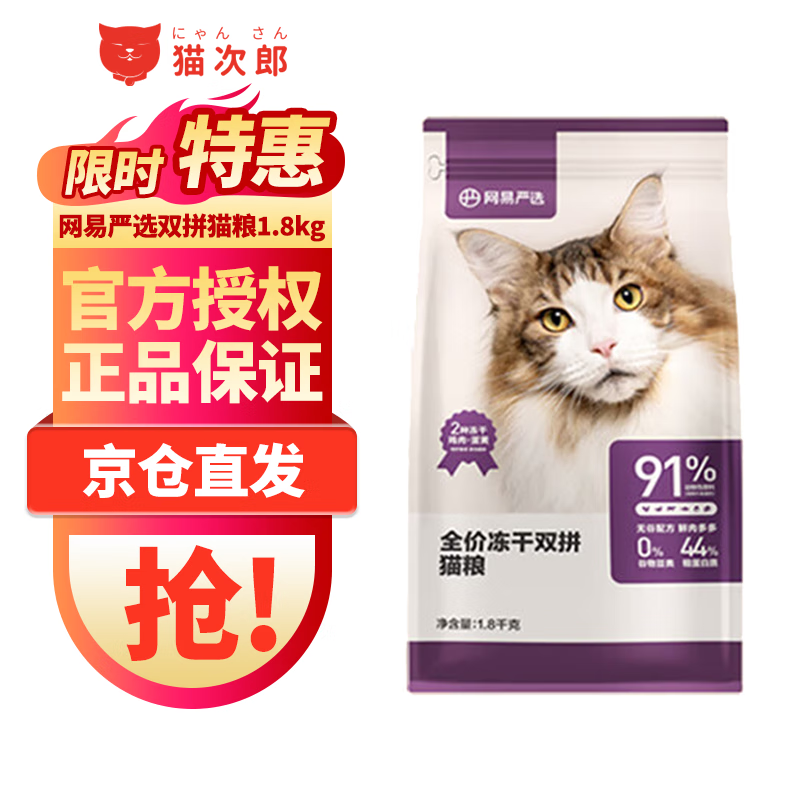 网易严选全价冻干双拼猫粮宠物主粮全价天然无谷粮1.8kg 【京东仓直发】1.8kg*1包