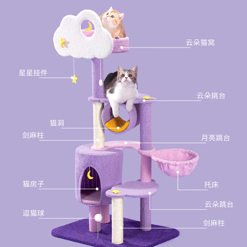 跃越(yueyue)*猫爬架猫窝猫树一体通天剑麻抓柱不占地大型高层跳台别墅猫咪用品 梦幻乐园(六层4猫窝 5跳台 吊床 逗猫球)