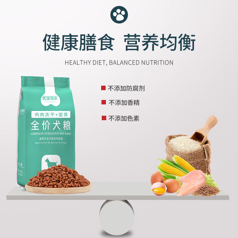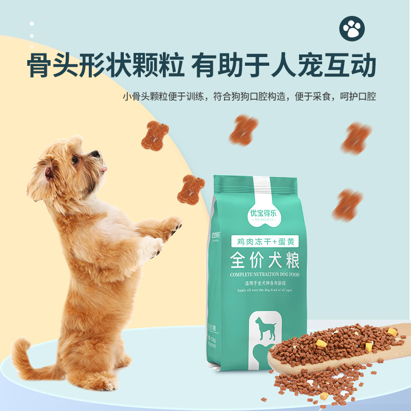 优宝得乐全价冻干狗粮成犬幼犬通用小型犬大型犬泰迪金毛1斤袋装