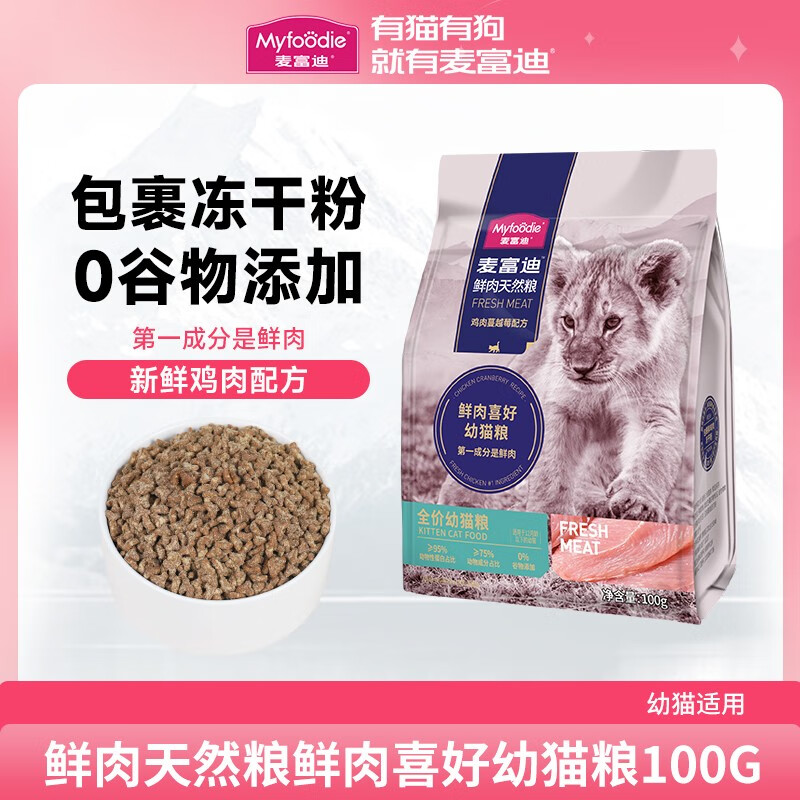 麦富迪(Myfoodie)猫粮 50%鲜肉成幼猫猫粮天然粮全价国产猫干粮 【试吃装】幼猫粮100g