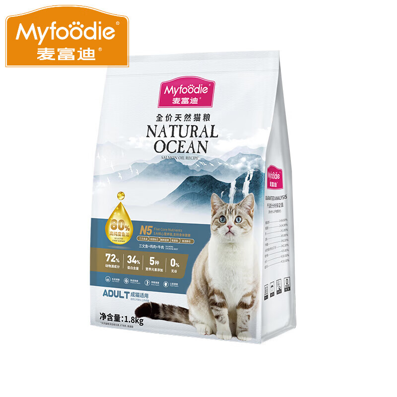 麦富迪(Myfoodie)麦富迪N5猫粮1.8kg美短英短鱼油无谷成猫粮营 三文鱼味 1.8kg