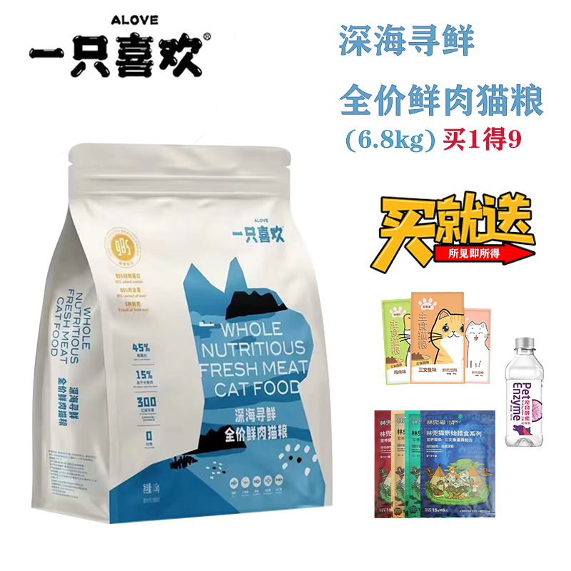一只喜欢深海寻鲜全价鲜肉猫粮冻干生骨肉成幼通用型增肥发腮低脂高蛋白 深海寻鲜6.8kg