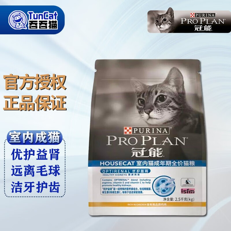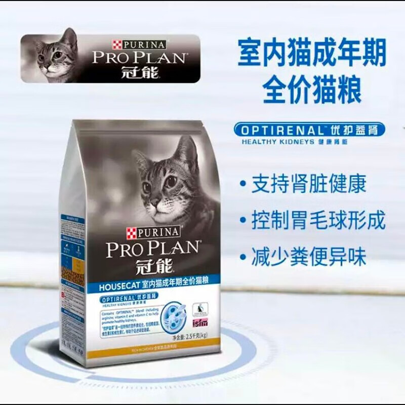 冠能(PRO PLAN)猫粮 宠物成猫期全价猫粮英短蓝猫布偶通用 【室内猫专用】成猫-2.5kg