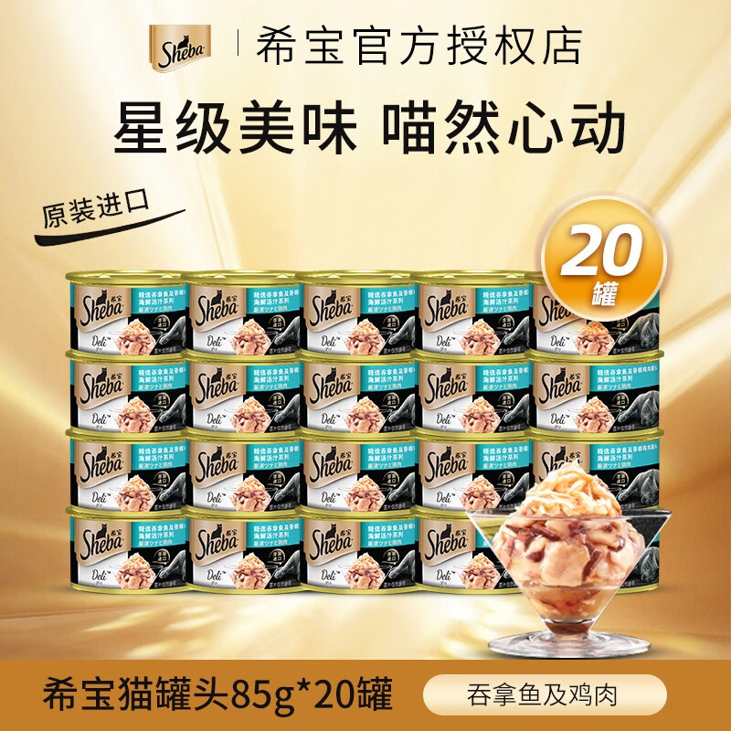 希宝(Sheba)宠物猫罐头 泰国进口布偶蓝猫猫咪白肉罐头猫零食湿粮 吞拿鱼香嫩鸡肉海鲜汤汁85g*20罐
