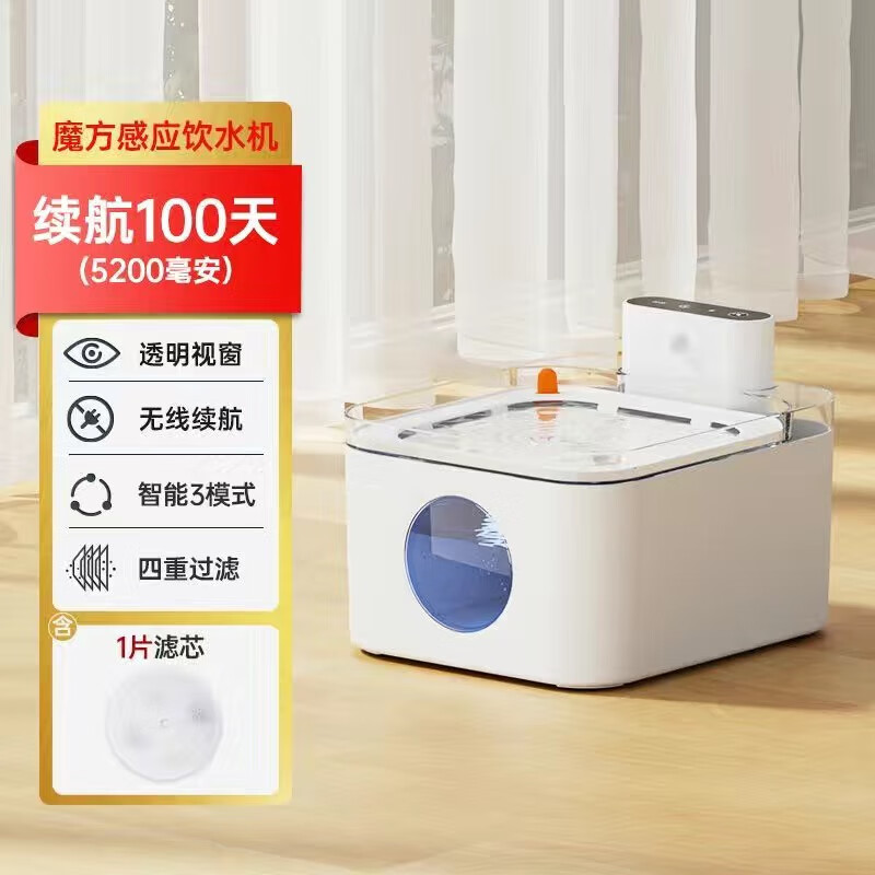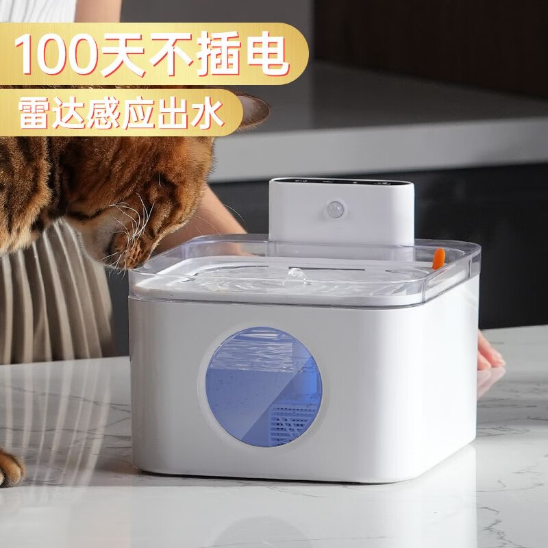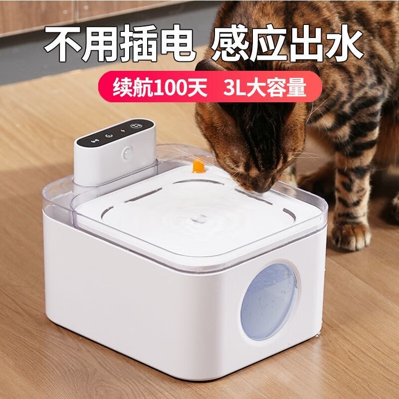 宠物饮水机不插电无线自动循环充电感应出水大容量猫咪狗狗喝水器 磨方无线感应饮水机
