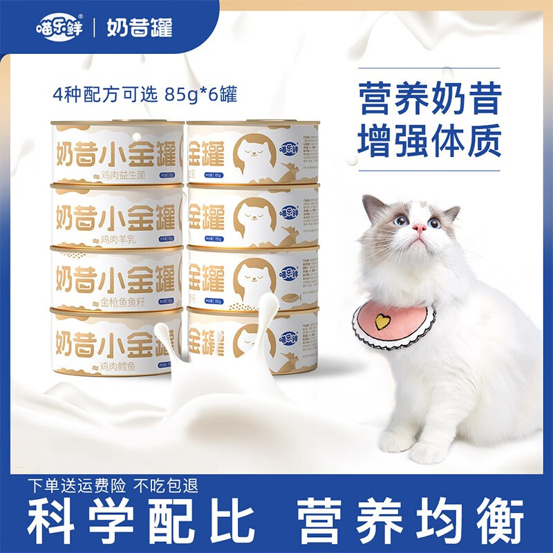 喵乐鲜猫罐头幼猫奶昔主食罐补充营养增肥羊乳猫咪用品湿粮慕思零食罐整箱85g*12罐 助力成长-鸡肉鳕鱼口味12罐