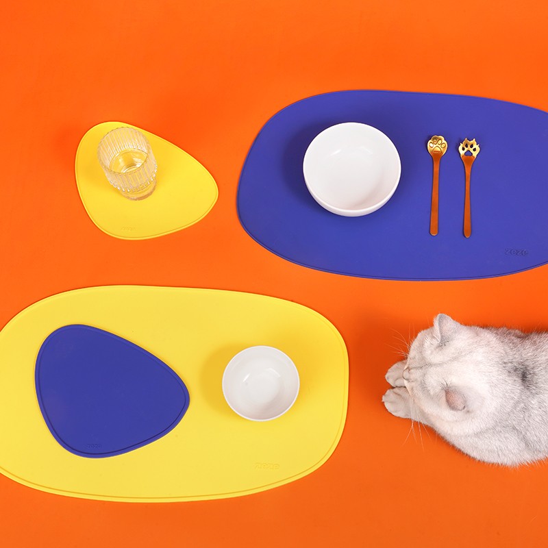 zeze宠物餐垫猫碗垫宠物防滑垫狗狗餐垫防水防溢出硅胶餐垫猫餐垫 浅蓝色