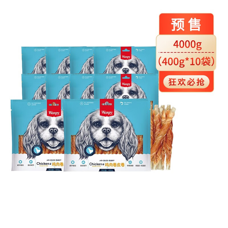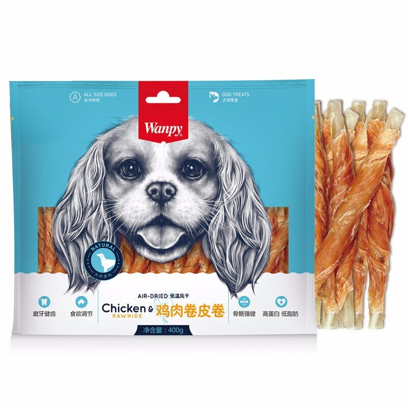 顽皮(Wanpy)狗零食鸡肉丝 宠物狗狗零食磨牙棒洁齿骨 泰迪狗狗训练奖励零食 鸡肉卷皮卷4000g