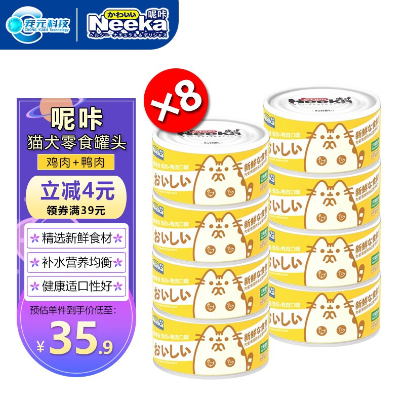 呢咔猫罐头零食补水罐湿粮猫咪宠物高汤浓汤营养罐成幼猫调理肠胃 【鸡肉 鸭肉】85g*8罐