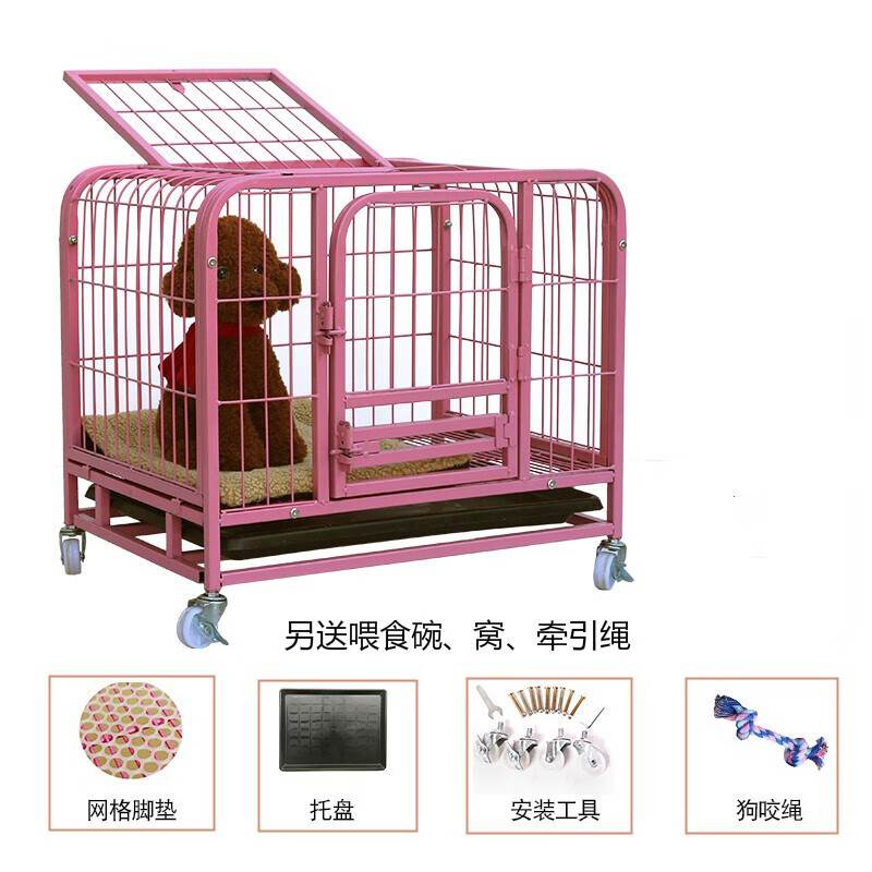 狗笼子小型犬泰迪中型犬室内大型犬带厕所分离宠物猫笼家用狗别墅 粉红色(饮水碗狗窝6件套) XS-54*34*49(适合3斤内宠物)