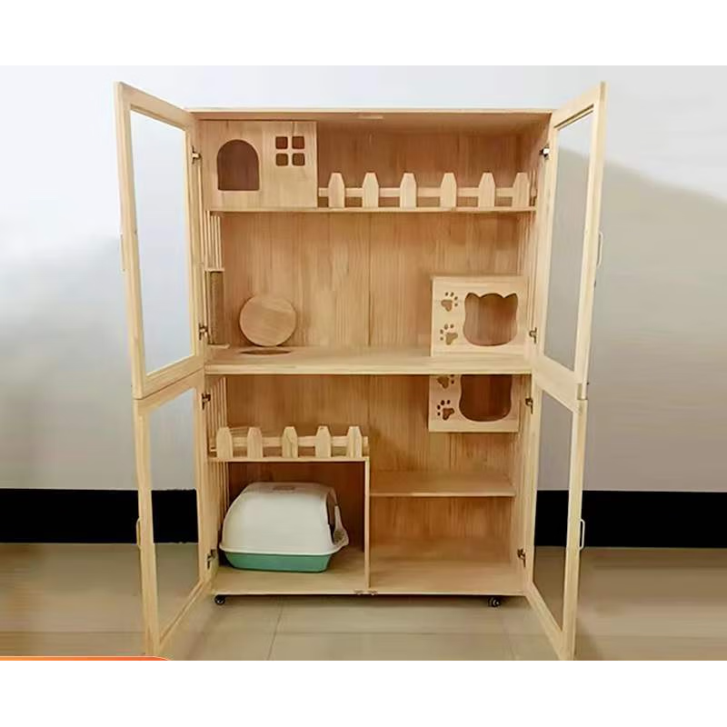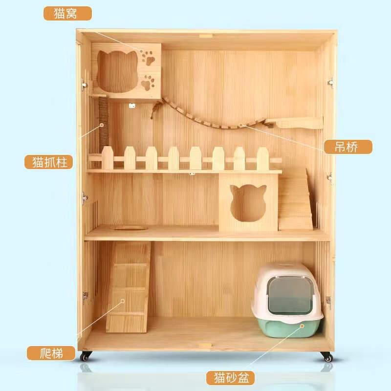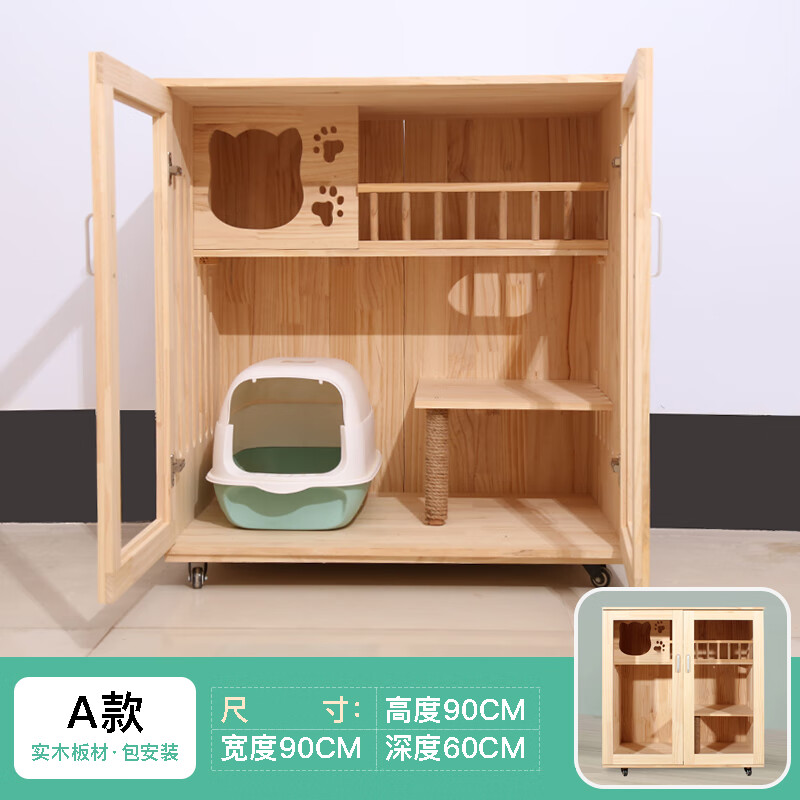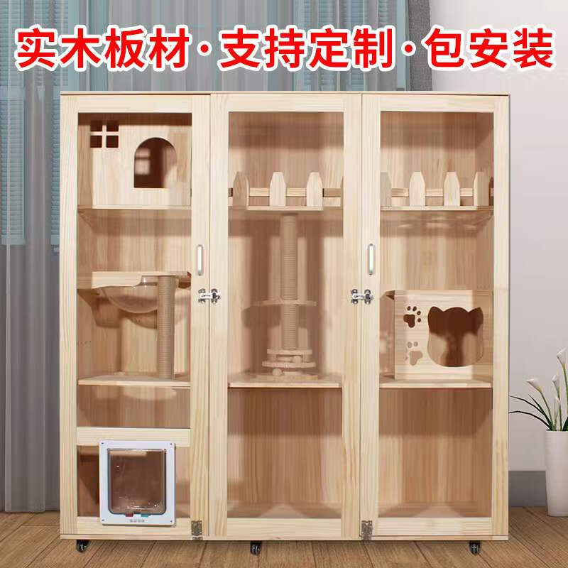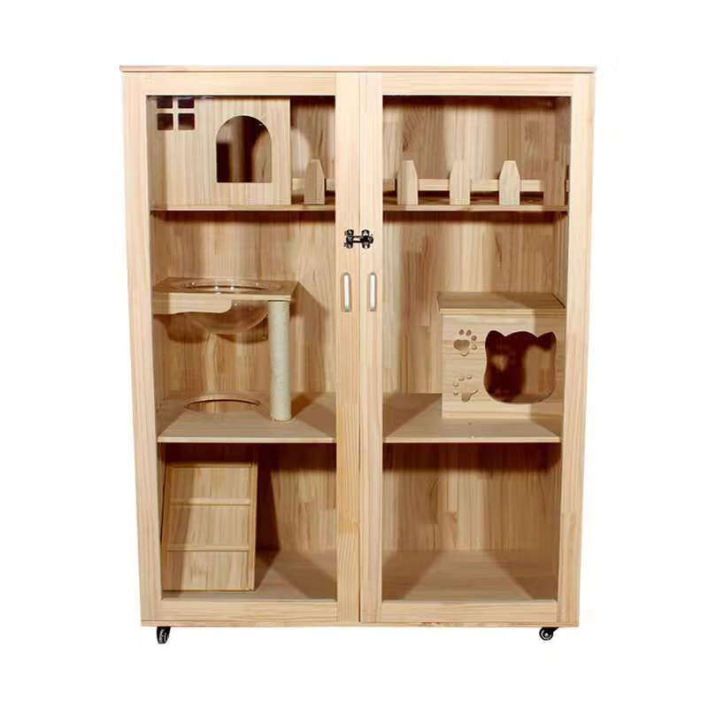 小米城堡猫笼子 木质猫笼双猫 家用木质猫别墅室内房子猫笼一体猫屋超大自 A款90高*90宽*60深钢化玻璃 原木色自行安装