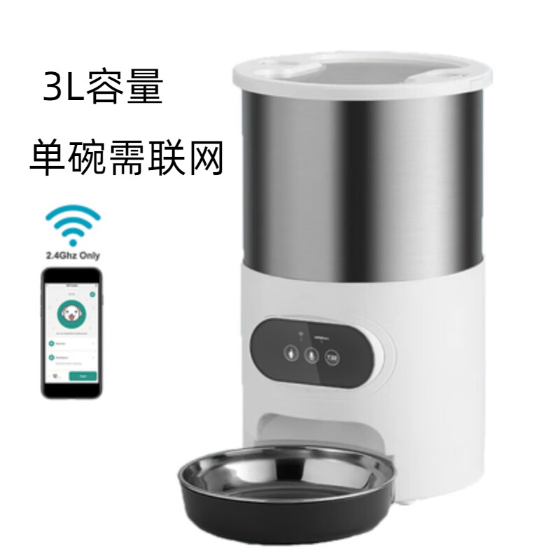 单双盘宠物智能自动喂食器 猫咪狗狗猫粮狗粮盆 自动定时定量 3L-单碗-WIFI版(需联网)