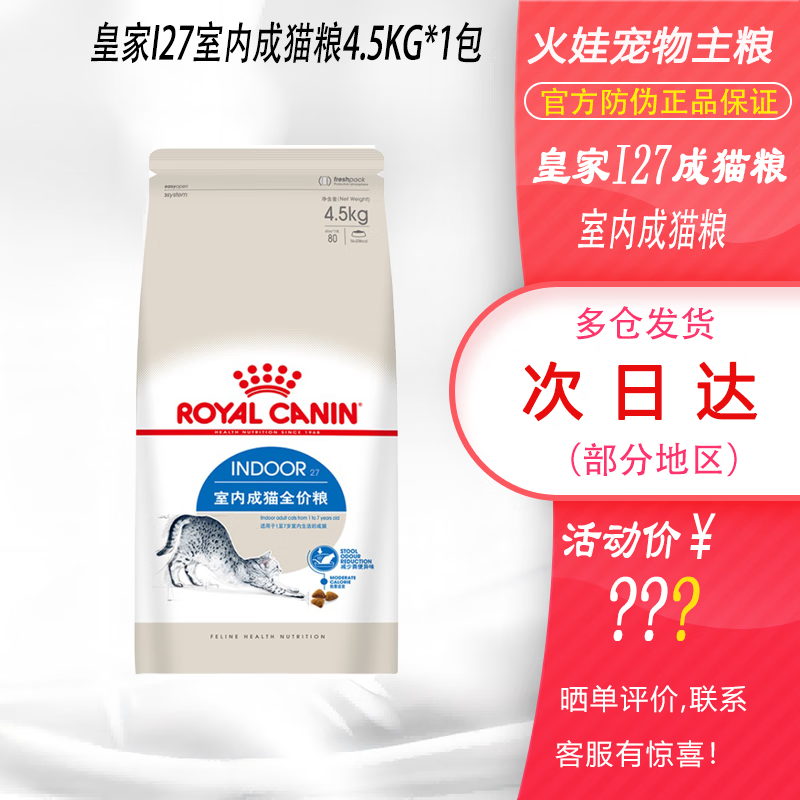 [官方防伪查询]皇家猫粮 i27室内成猫猫粮 全价粮 通用粮 4.5KG整包日期新鲜 i27成猫粮最快次日达送货上门