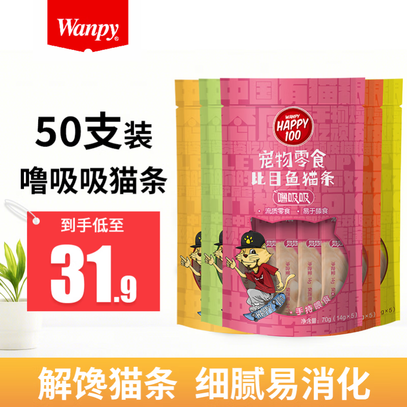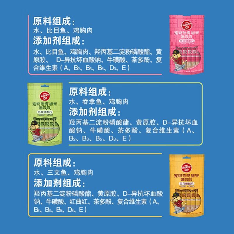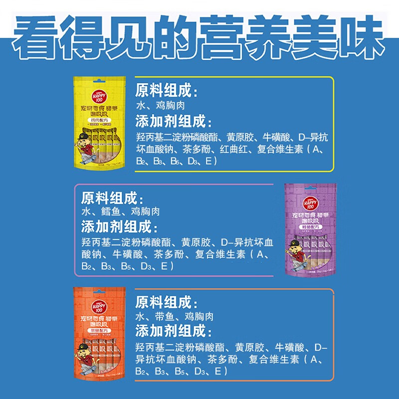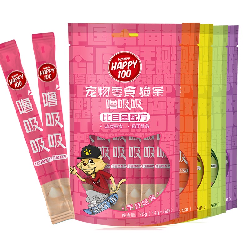 顽皮happy100猫条噜吸吸猫零食湿粮拌饭逗猫解馋美味 10包(50支混合口味)