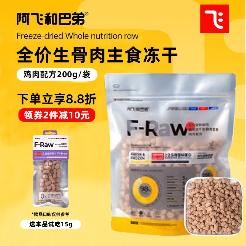 阿飞和巴弟F-Raw生骨肉主食冻干颗粒 全阶段猫粮成猫猫粮 鸡肉配方200g/袋