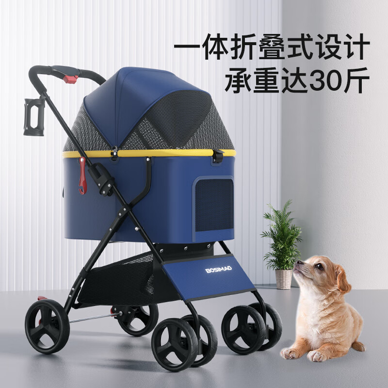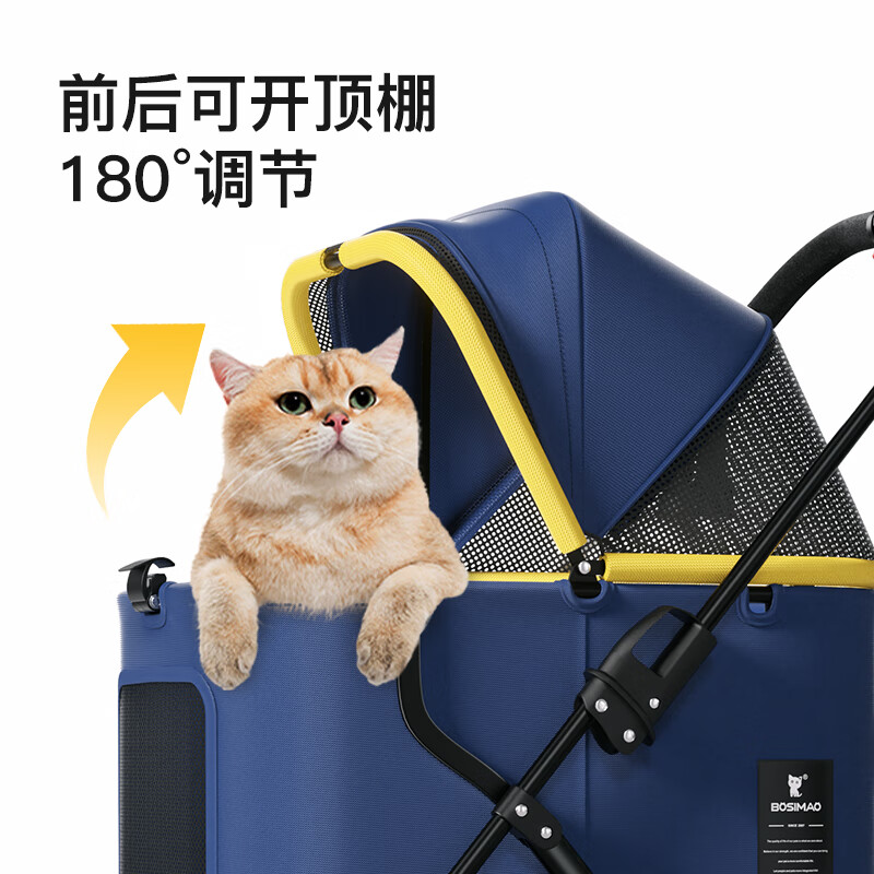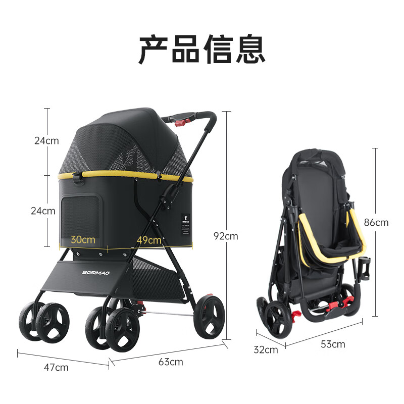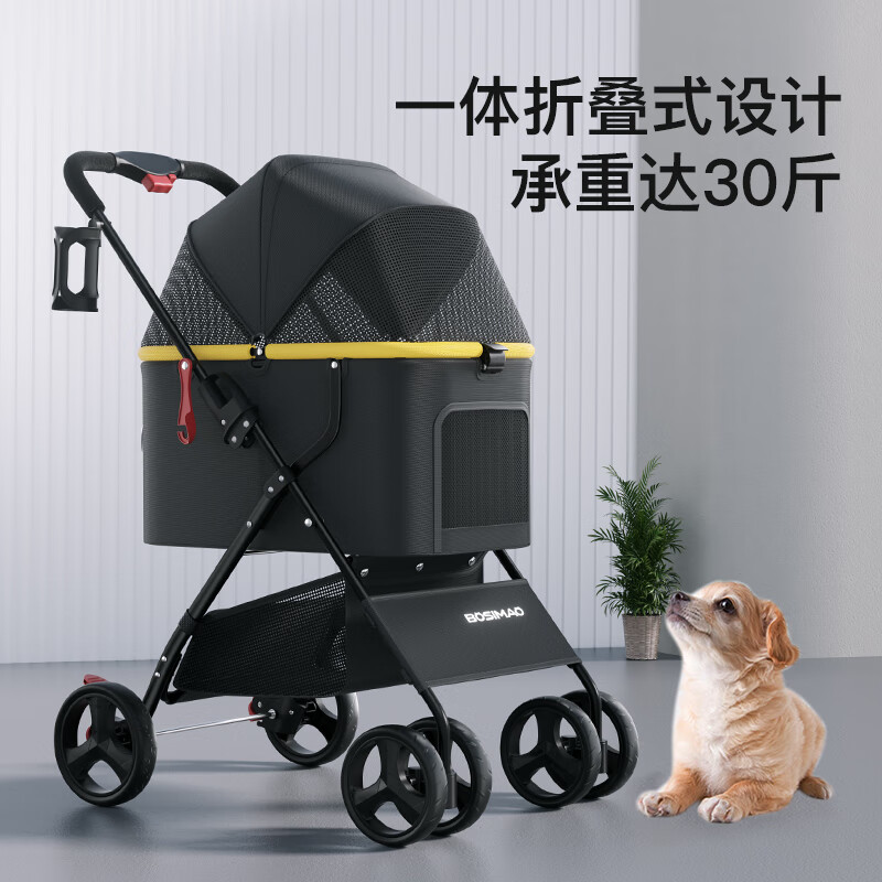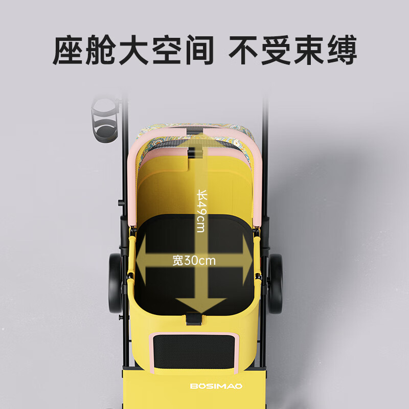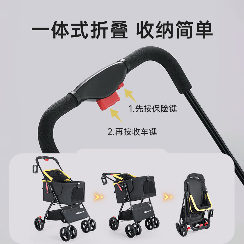BOSIMAO宠物推车猫咪外出便携手推车小型犬狗狗轻便折叠遛狗车出行小推车 柠檬黄