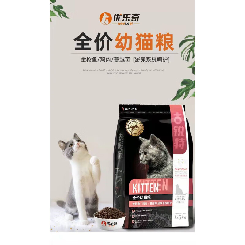 古锐特猫粮优乐奇古锐瑞特成幼猫改善肠道鸡肉金枪鱼蔓越莓无谷粮益生菌 古锐特幼猫() 3kg