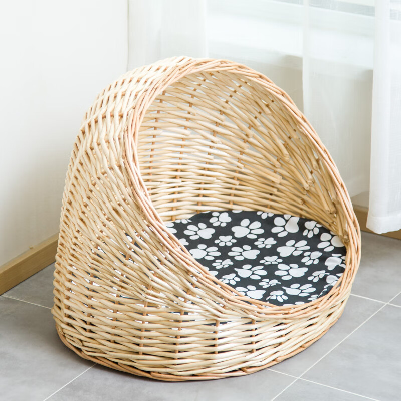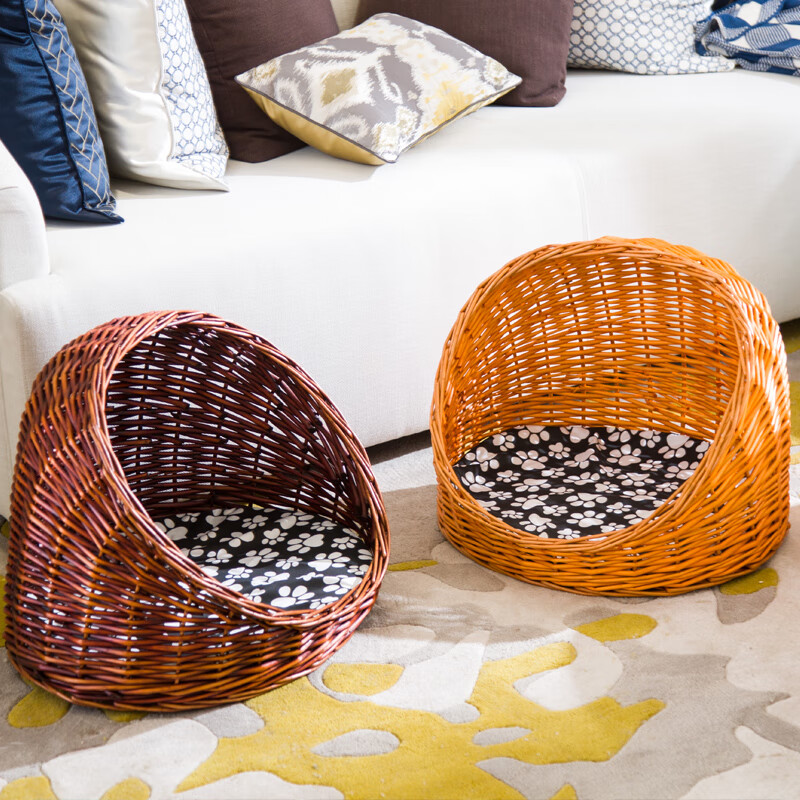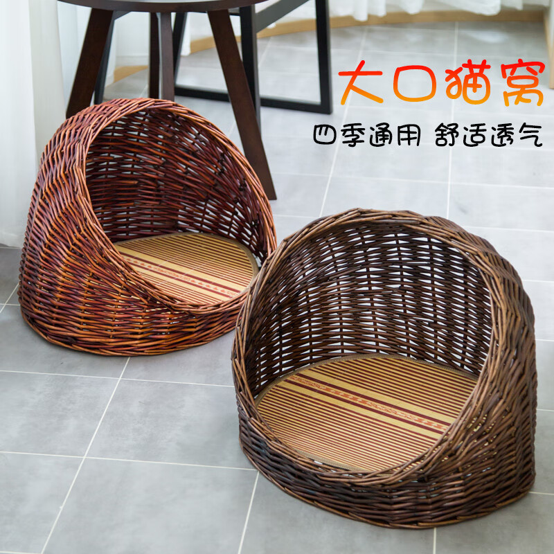 昌炅藤编猫窝四季通用猫咪窝猫屋夏季狗窝泰迪博美小型犬窝狗屋房子窝 蜜色 垫子 凉席 L-大型50*40[适合8斤内]