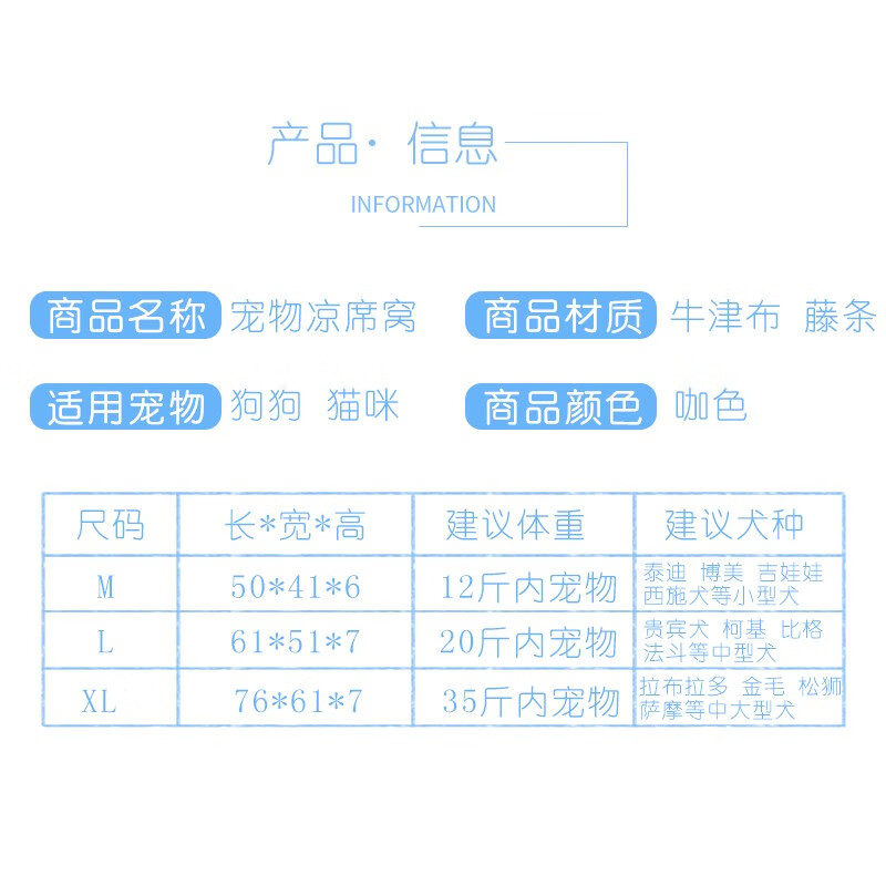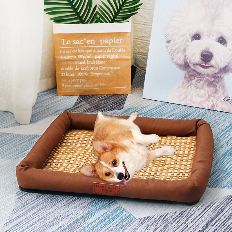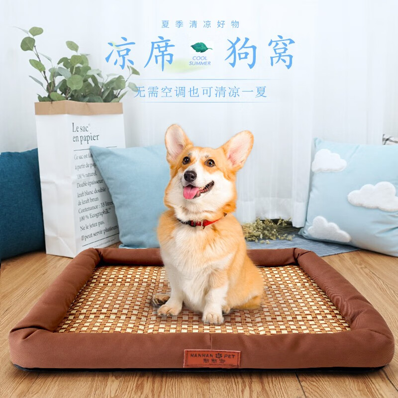 憨憨宠 狗窝猫窝 夏季宠物狗狗窝垫子凉席 金毛贵宾泰迪中型犬狗床狗垫 凉席款咖啡棕L码 61*51*7cm