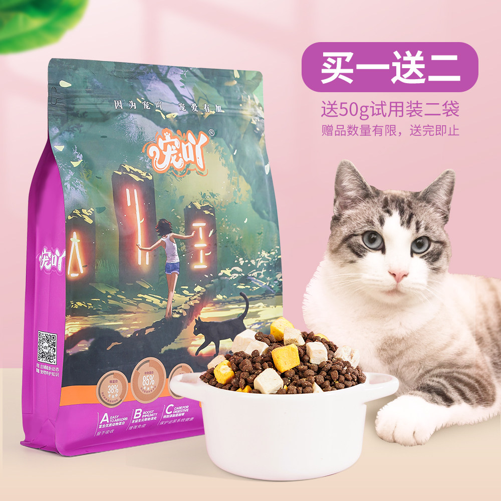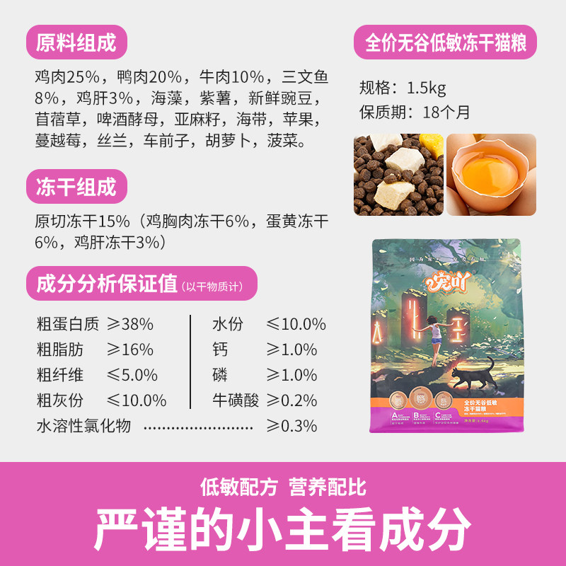 宠吖无谷冻干猫粮营养幼猫英短蓝猫布偶增肥发腮成猫食专用1.5kg