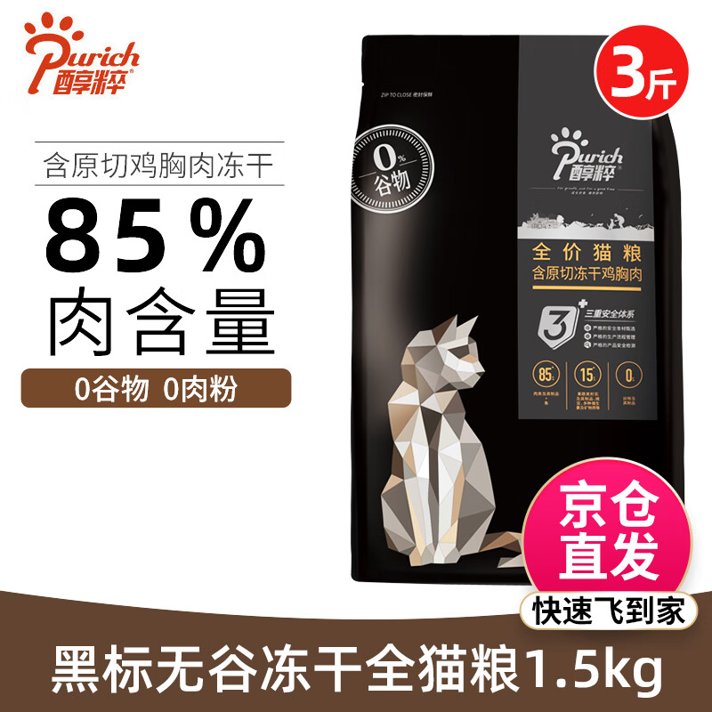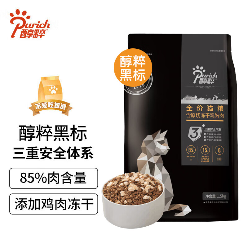 醇粹黑标猫粮 85%肉含量添加原切鸡肉冻干纯粹无谷全价猫粮 1.5kg