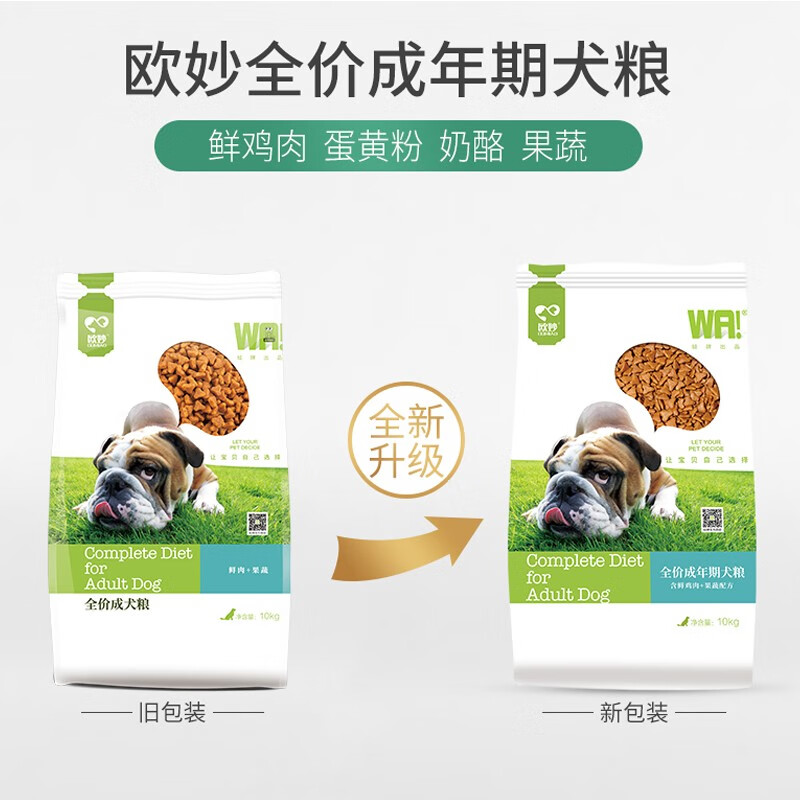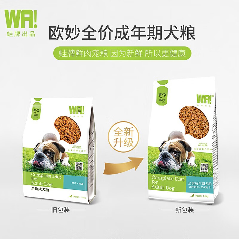 蛙牌狗粮欧妙全价幼犬成犬狗粮泰迪通用型1.5kg鲜肉粮贵宾金毛柯基哈士奇八哥比熊低盐低脂 成犬粮10kg