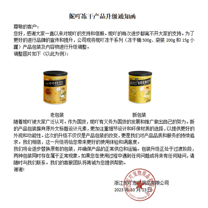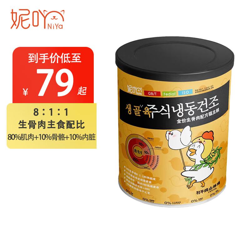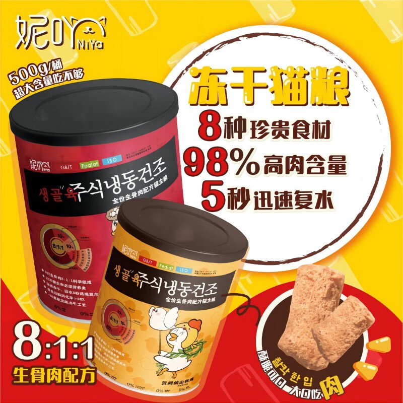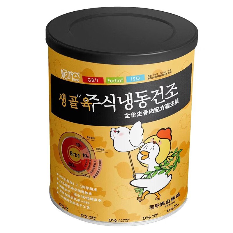 妮吖冻干全价生骨肉冻干猫主粮主食冻干猫零食猫粮营养增肥主食冻干 【桶装】和平鸽山林鸡 500g