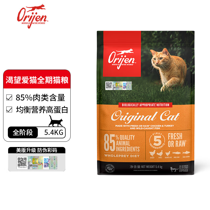 Orijen渴望无谷鸡肉味全阶段猫粮5.4kg美版【含肉量85%】