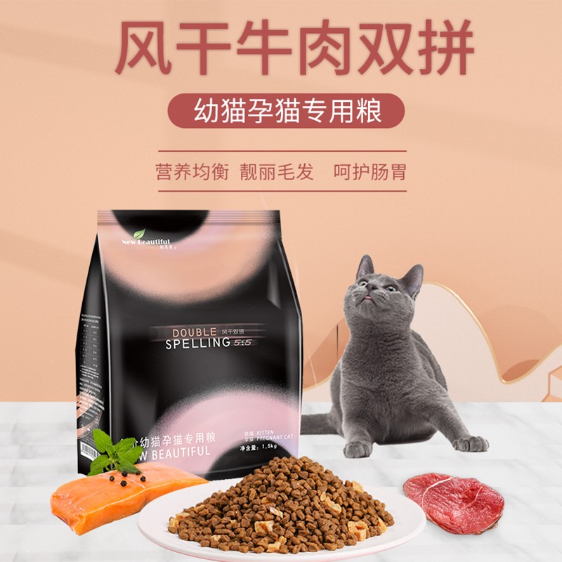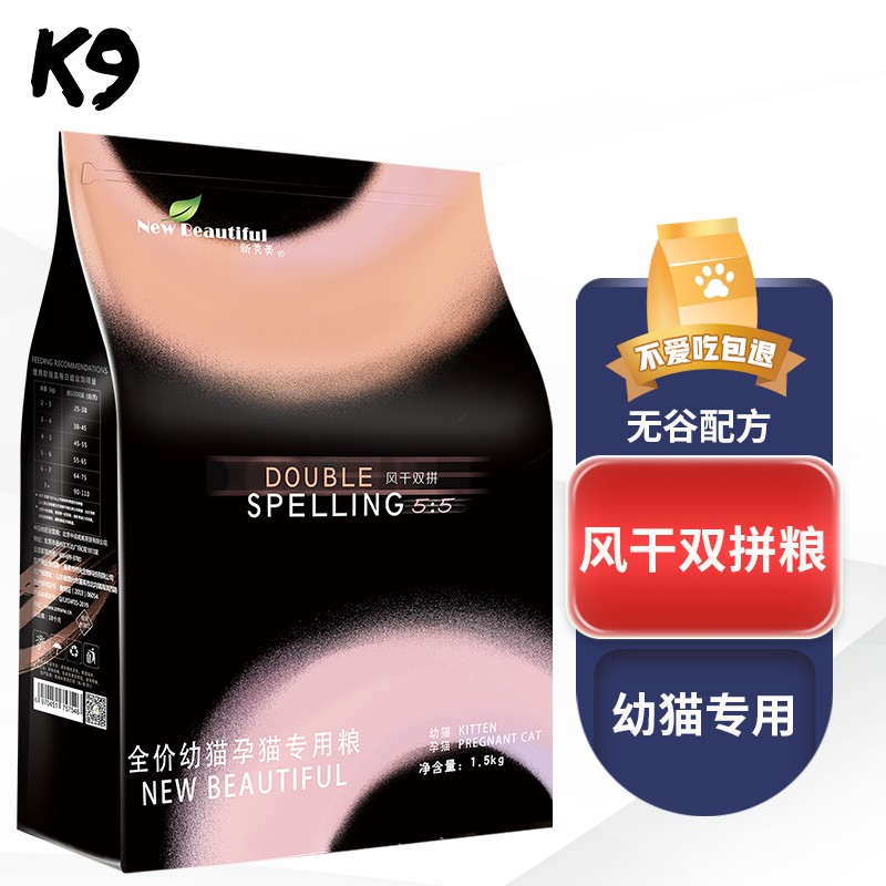 K9猫粮幼猫孕猫通用全价猫粮新秀美无谷风干双拼粮无谷发腮美全价幼猫专用粮1.5kg