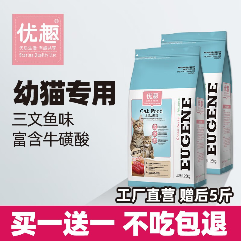 优趣猫粮高蛋白全价幼猫专用1-4-12个月小奶猫成猫添加牛初乳赠后5斤 三文鱼味1-12月幼猫粮
