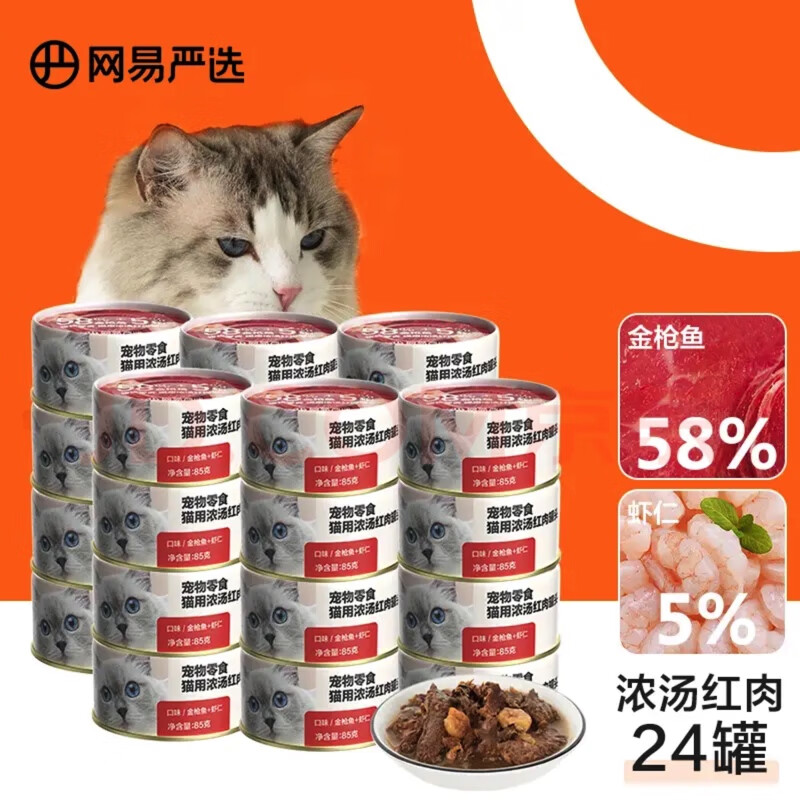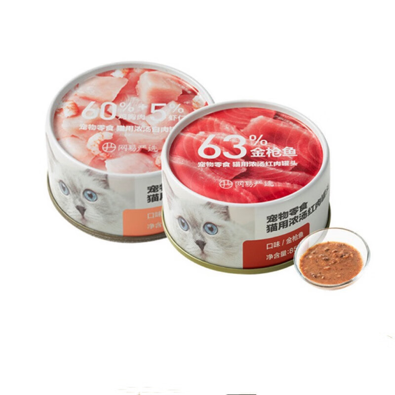 网易严选猫罐头宠物零食罐浓汤湿粮金枪鱼鸡丝红肉增肥营养幼猫 鸡肉三文鱼浓汤 6罐装