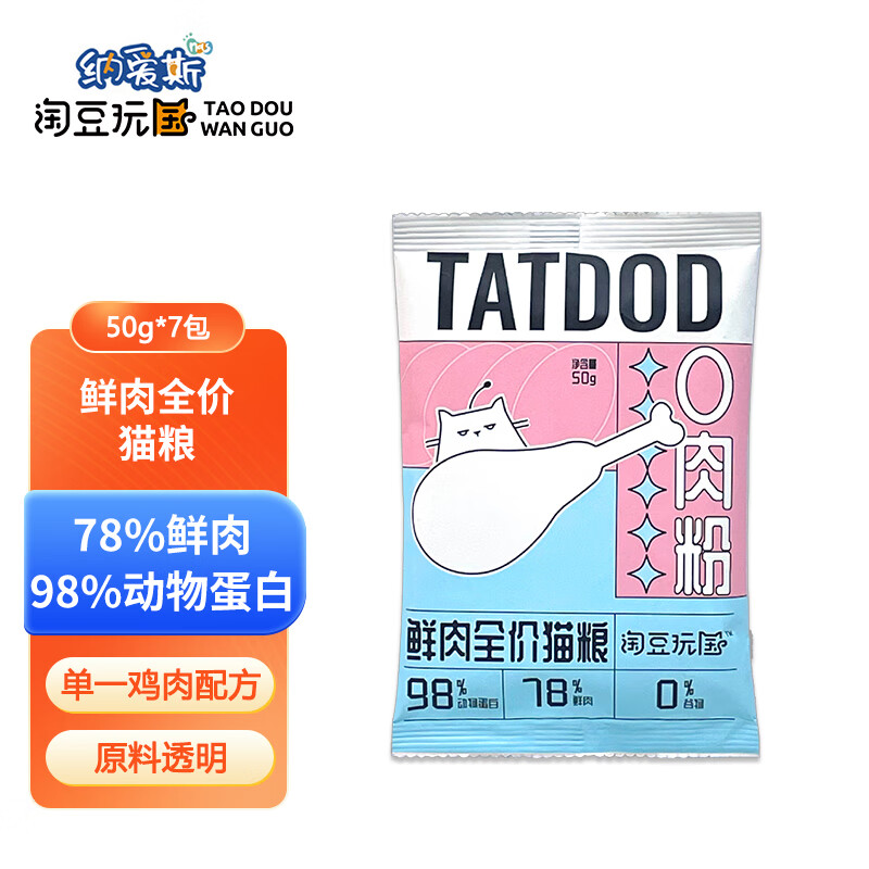 淘豆玩国 鲜肉全价猫粮 0谷物0肉粉 低敏天然高鲜肉 单一鸡肉配方 每天一小袋 健康每一天 350g 50g*7包