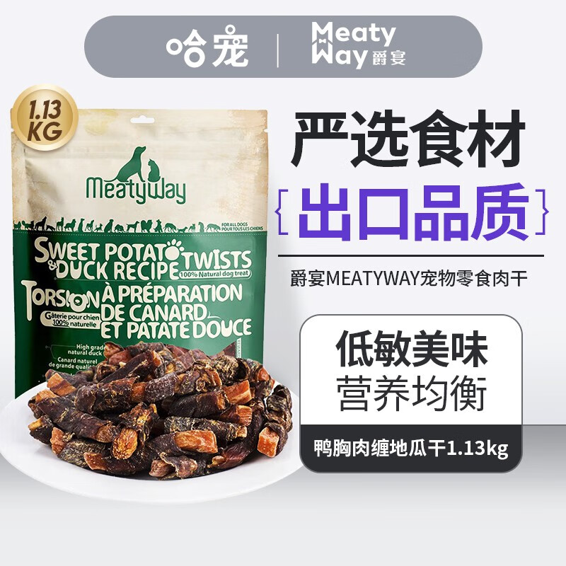 爵宴(MEATY WAY)狗狗零食大礼包鸭肉鸡肉干 狗狗训练奖励零食宠物磨牙棒 鸭胸肉缠地瓜干1.13kg