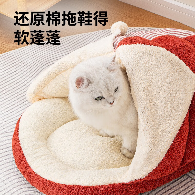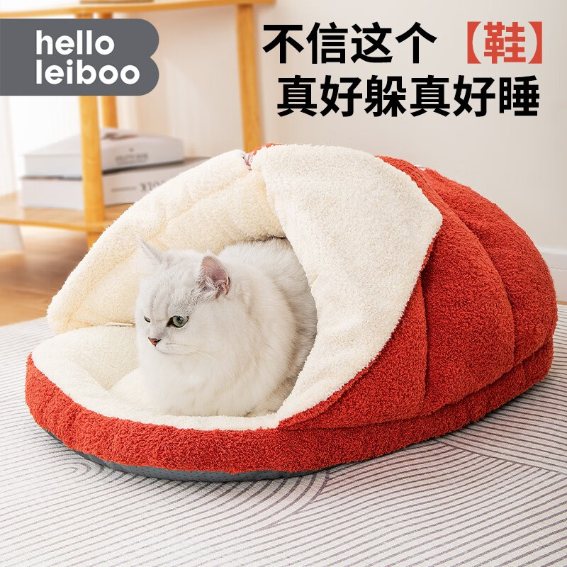 HELLOLEIBOO徕本猫窝四季通用猫咪躲避屋空调屋网红猫窝拖鞋PP棉小狗猫咪的窝 信你的”鞋“猫狗窝-绿绒绒 L-大型