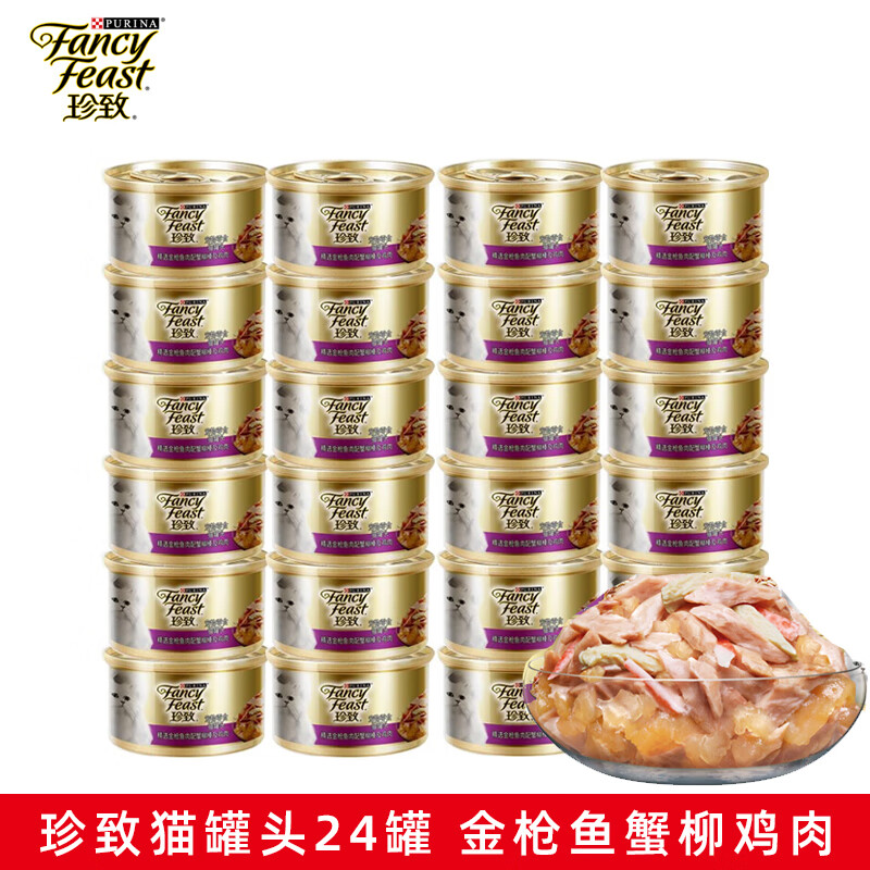 珍致(FancyFeast)猫罐头白肉泰国进口猫湿粮 宠物成幼猫金枪鱼猫零食营养食品 金枪鱼 人工蟹肉 鸡肉24罐【肉冻