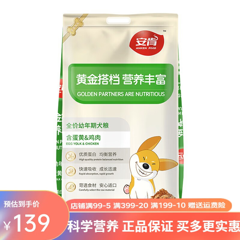 安肯狗粮 幼犬金标金毛泰迪萨摩耶哈士奇贵宾小型犬中大型犬通用犬粮 蛋黄 鸡肉 5公斤(10斤)