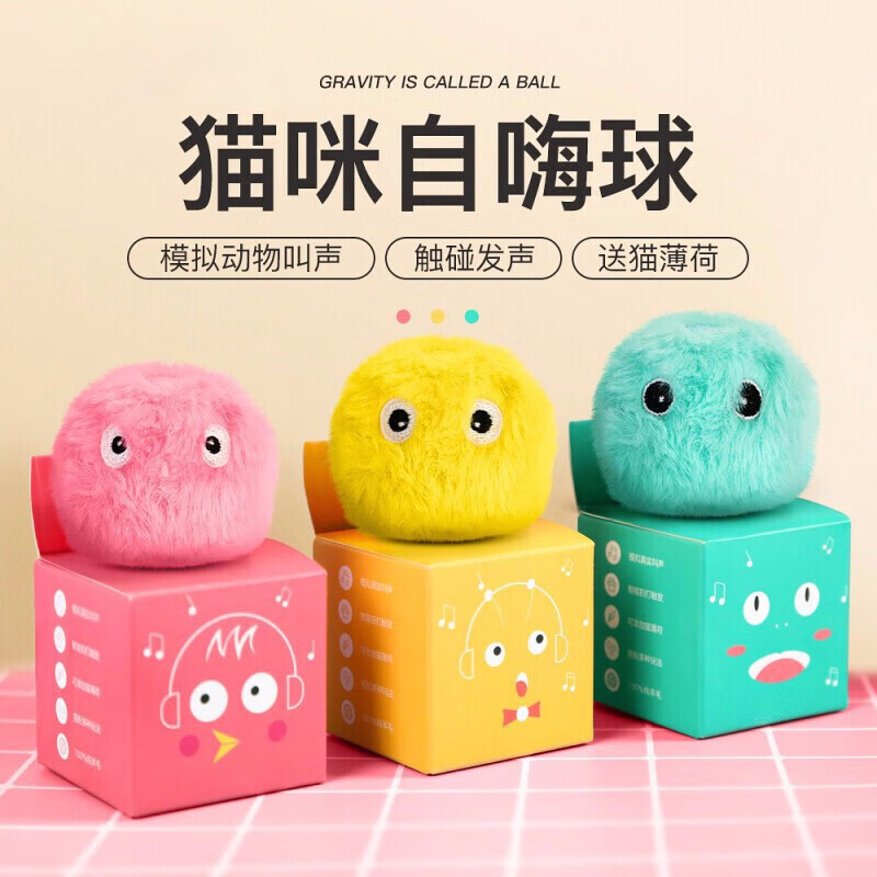 hoopet猫玩具引力精灵叫叫球自嗨解闷神器逗猫棒猫薄荷小猫幼猫磨牙耐咬发声玩具球毛绒球宠物猫咪用品 精灵叫叫球三个组合装