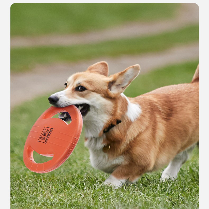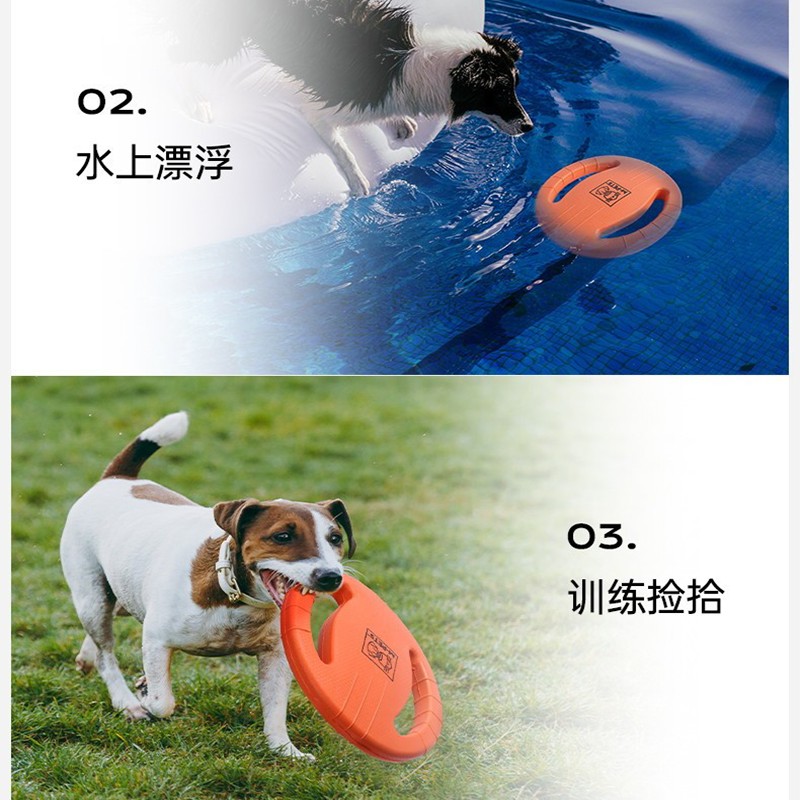 贝尼宠 狗飞盘 狗玩具耐咬边牧金毛训犬训狗用品训练小狗飞碟泰迪宠物狗专用飞盘 EVA带把手浮水飞盘23cm橙色 新款