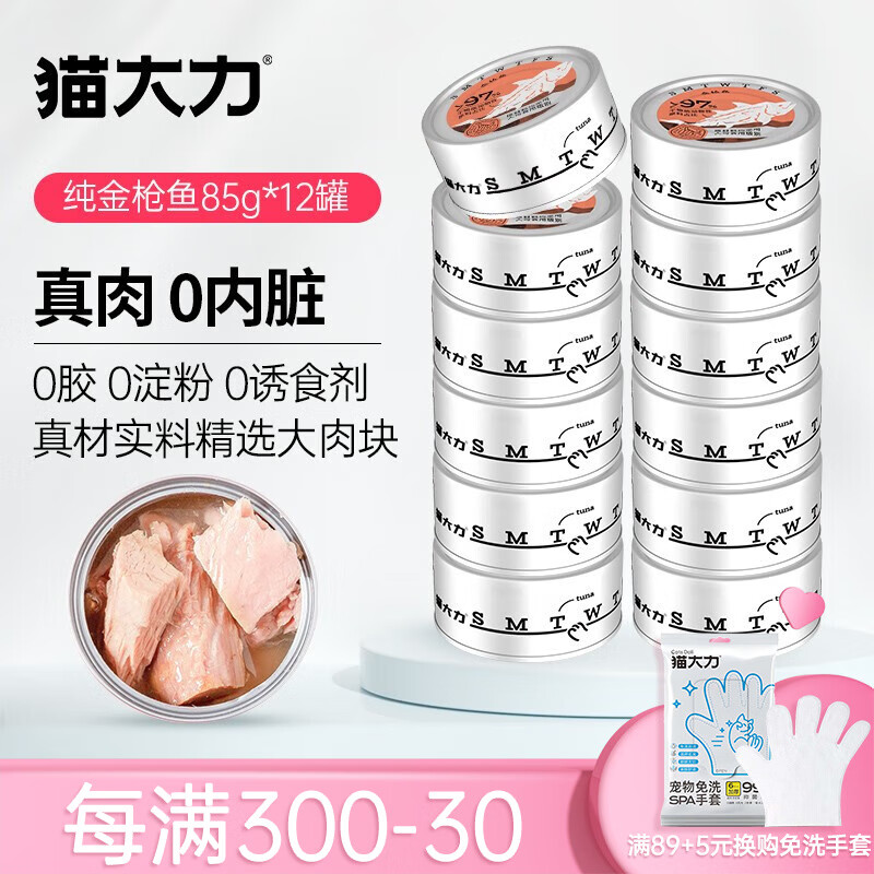 猫大力猫罐头宠物零食猫用浓汤大口肉猫湿粮成幼猫全价通用罐头营养增肥 【纯金枪鱼85g】*12罐