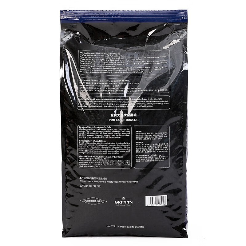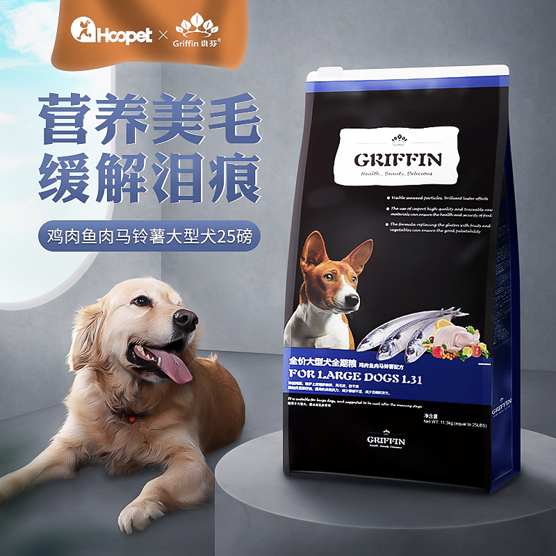 贵芬F51/L31全价犬粮大型犬中型犬美毛护肤宠物鸡鸭鱼肉大狗主粮10kg L31鸡肉鱼大型犬粮(11.3kg)