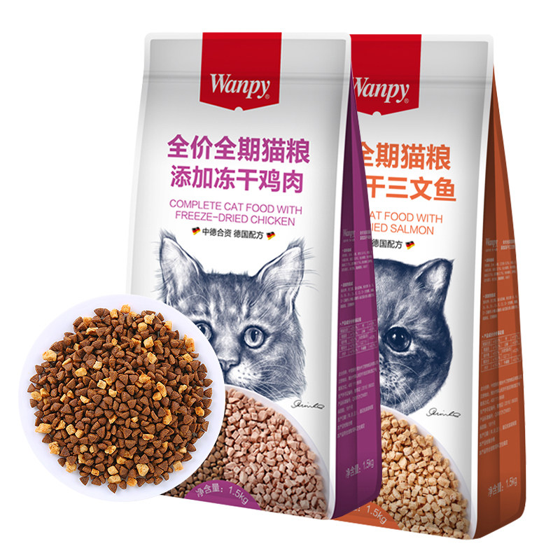 wanpy顽皮冻干双拼猫粮8kg全价全期营养增肥发腮幼猫成猫通用干粮