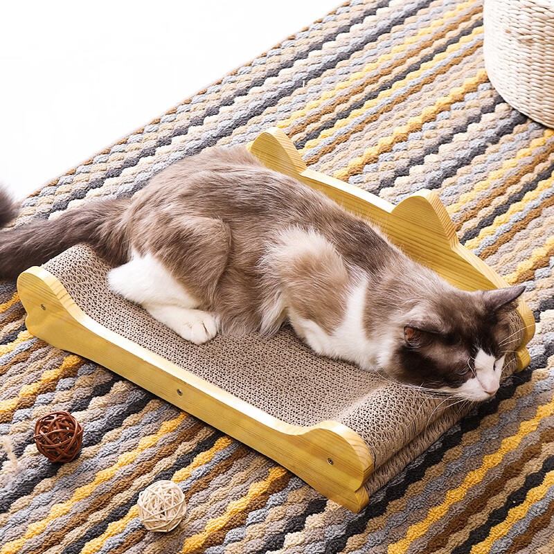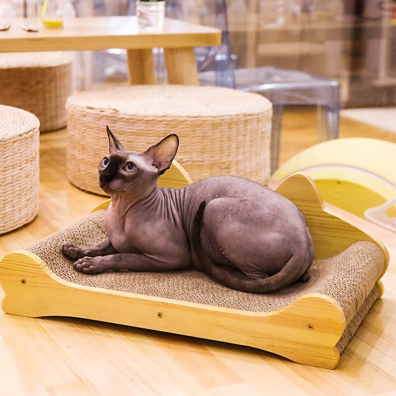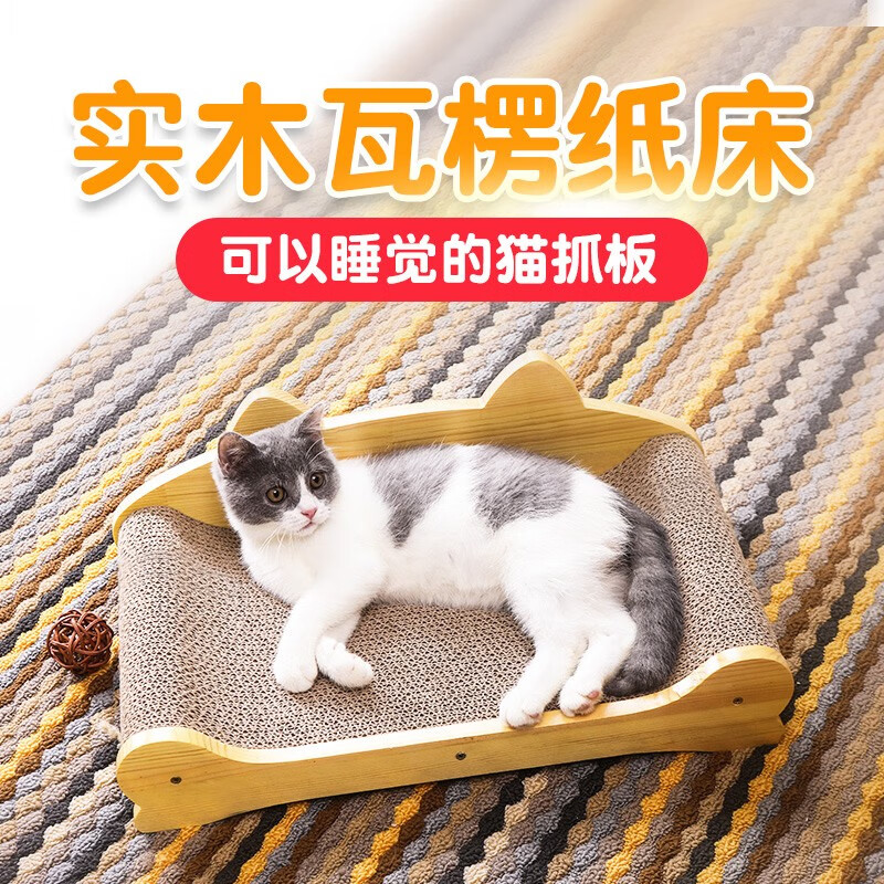 美悦宠物 实木猫抓板磨爪器猫爪板护沙发瓦楞纸猫玩具猫磨爪板猫咪用品猫窝大号 长60厘米 实木瓦楞纸猫沙发