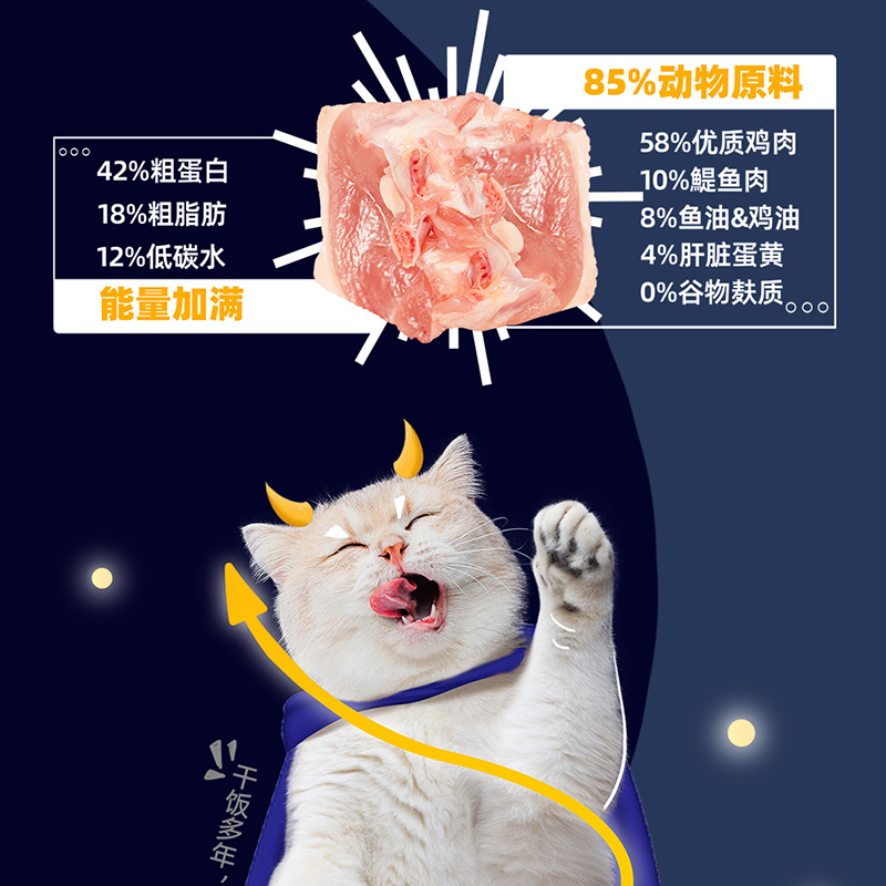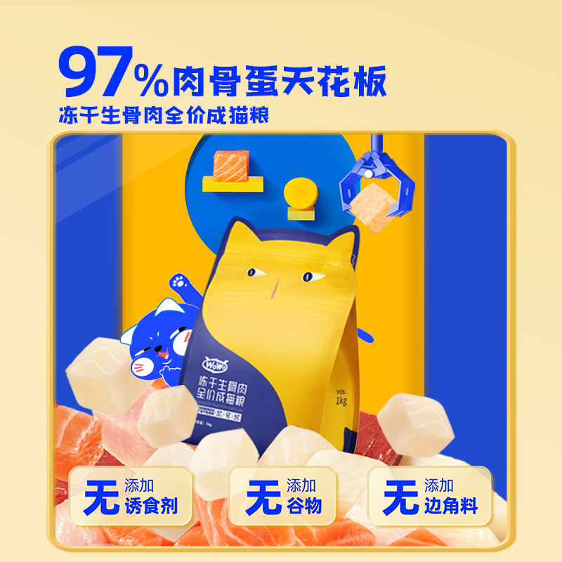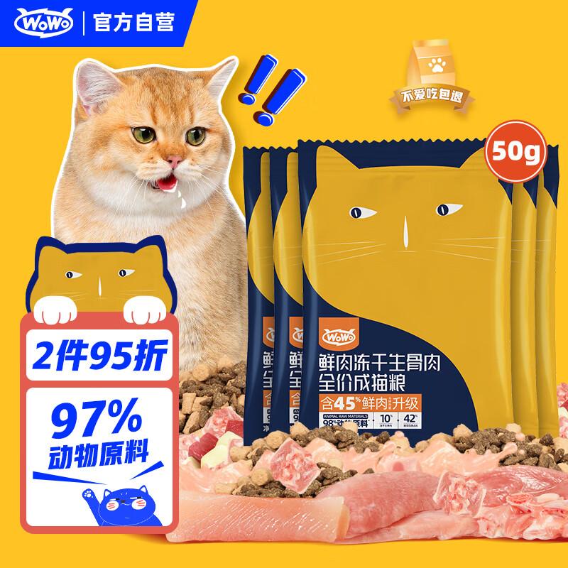 WOWO猫粮成猫 全价无谷鲜肉冻干生骨肉猫干粮250g 旗舰款 98%动物原料