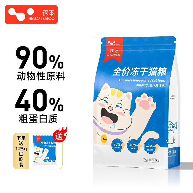 HELLOLEIBOO徕本 全价冻干猫粮鲜肉无谷高蛋白营养猫咪双拼主食粮成猫幼猫 鸡肉 生骨肉冻干三拼全价猫粮 2.5KG