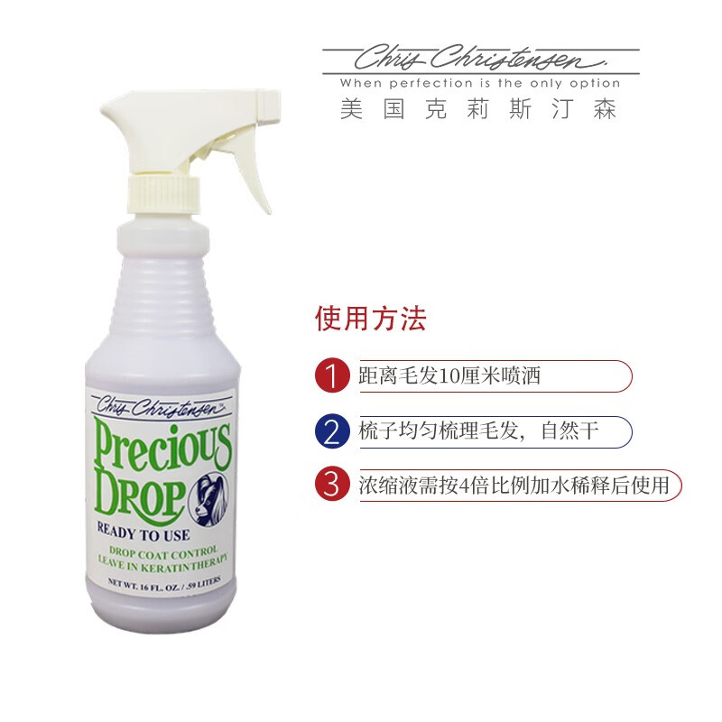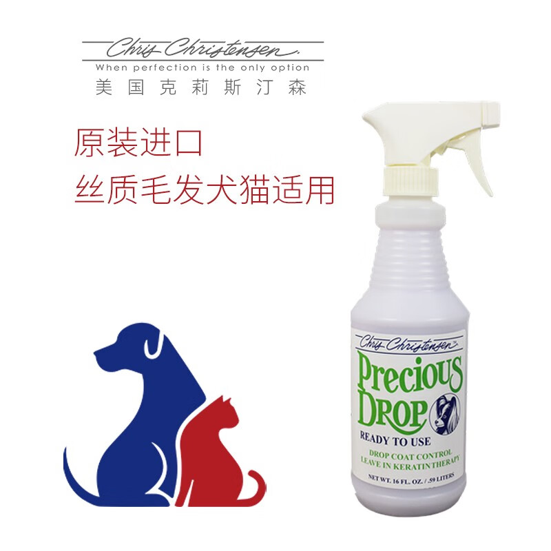 克莉斯汀森(Chris Christensen)美国进口宠物猫狗美容免洗护毛素角蛋白垂顺喷雾减少断毛 角蛋白垂顺喷雾473ml
